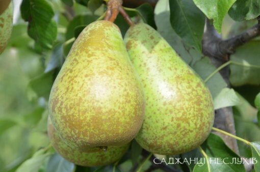 самий плодоносний і невибагливий осінній сорт. Може служити обпилювачем для інших сортів груш. На айвовій підщепі в стадію плодоношення вступає на третій рік після посадки. Крона дерева широка, густа, пірамідальна. Плодоношення рясне і регулярне. Плоди зелено-жовті, одномірні, масою 140-180 г, подовжено-грушоподібної форми. М’якоть запашна, рожево-кремова, масляниста, дуже соковита, солодка. Збір врожаю триває з кінця вересня до середини жовтня. Після збору врожаю з дерева, полежавши кілька днів, груша дозріває і набирає аромат і ніжний смак. У прохолодному сухому місці зберігається до півроку. Груші даного сорту багаті йодом, калієм, магнієм, кальцієм, міддю, залізом, фосфором, цинком і натрієм. У стиглих плодах присутня фолієва кислота, що робить вживання груші особливо корисним для людей з проблемами кровотворення. Також в груші сорту «Конференція» міститься близько 83% води і приблизно 14% глюкози, фруктози і сахарози, присутні ферменти, клітковина, азотні і пектинові речовини, вітаміни, флавоноїди і фітонциди.
